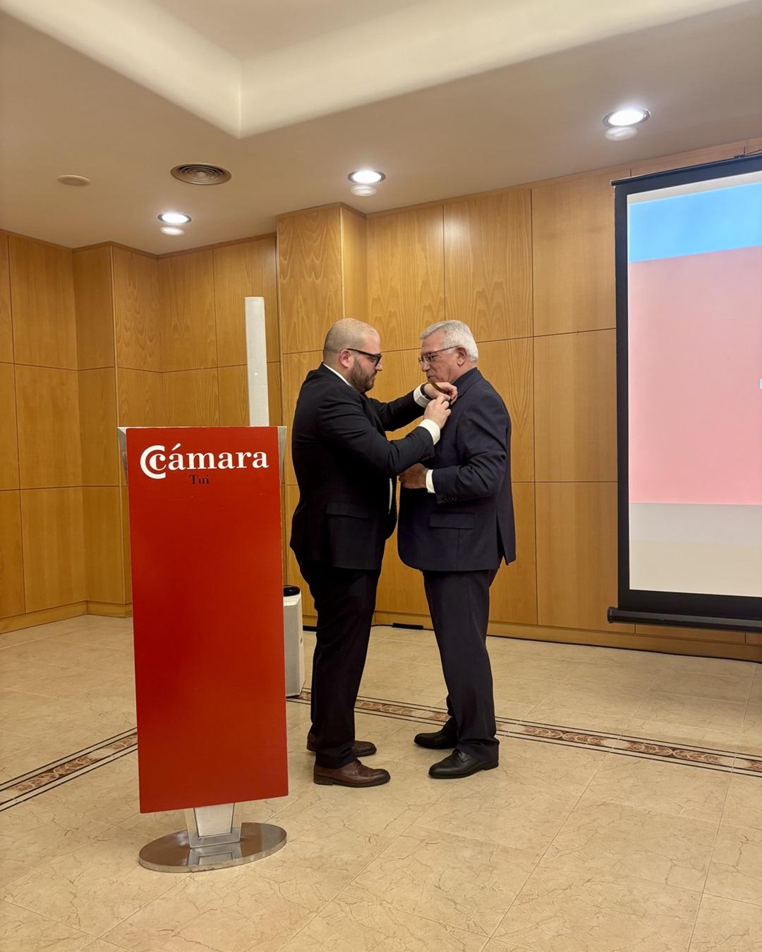 Asimismo, durante el acto, se hizo entrega a Gumersindo Alonso de la Insignia de Oro de la Cámara Oficial de Comercio de Tui, un reconocimiento a su excepcional labor y contribución al desarrollo económico de la demarcación, entre junio del 2010, cuando tomó la presidencia, y febrero de 2023, cuando cedió el testigo a Antón Fonseca.