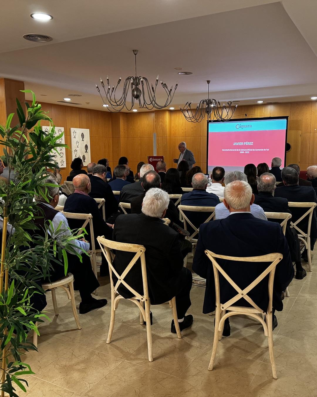 El homenaje comenzó con una exposición acerca del “Pasado, presente y futuro de la Cámara de Comercio de Tui”, que llevaron a cabo Antón Fonseca, actual Presidente de la Cámara y Emilio Estévez, Vicepresidente Segundo, poniendo en relieve, el gran trabajo desarrollado por Gumersindo junto con el anterior equipo de gobierno,  y la responsabilidad que ello conlleva en la actualidad, haciendo hincapié en la línea continuista que mantiene el Pleno a día de hoy, el cual ha heredado los grandes retos de la junta directiva anterior.